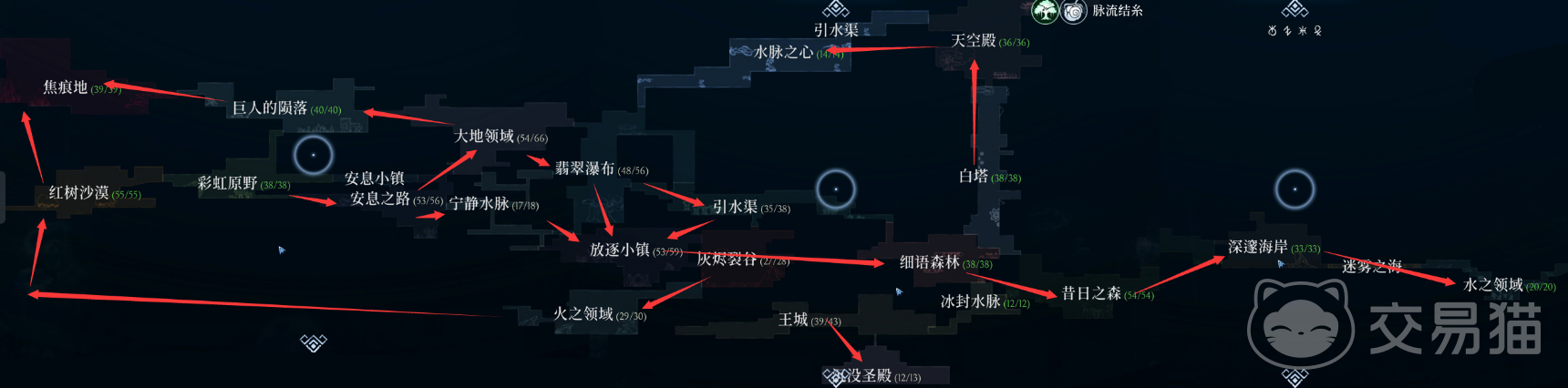 ,在游戏中探索方向和地图都是可以根据玩家的喜好来进行判断的,但是综合玩家前期的实力和剧情推进,小编还是为小伙伴们准备了地图探索的顺序, 如图所示。,